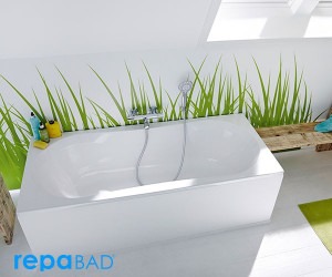 Die beliebte Wannenfamilie Pluto bietet formschöne Duowannen für ein Badeerlebnis zu zweit. Der symmetrisch geformte Innenbereich überzeugt durch sanft geschwungene Radien mit eleganter Umrandung des Innenraumes.