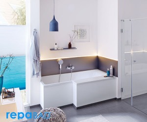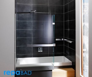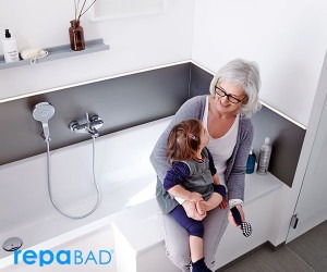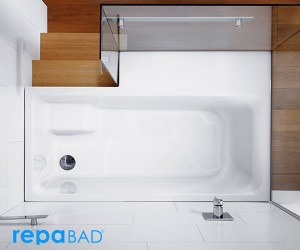 Die Duschbadewanne Stairway ist eine komfortable Badewanne und überzeugt darüber hinaus durch einen geräumigen Duschbereich (105 x 105 cm) mit Sitzfläche. Die außenliegende Treppe sowie die Innenstufe machen die Generationenwanne leicht begehbar. Auf Wunsch sorgen ergonomisch geformte Haltegriffe zusätzlich für mehr Sicherheit und Komfort beim Betreten der Badewanne mit Treppe.